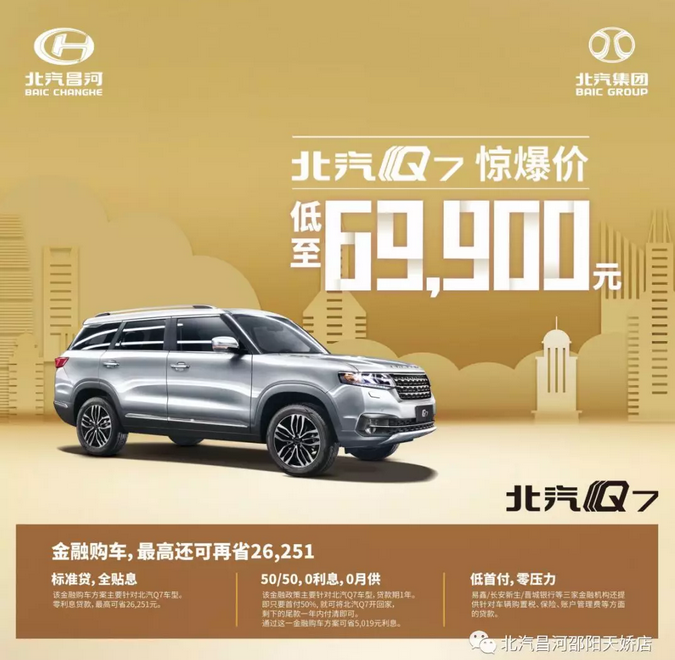 關(guān)于堵車不堵心的秘訣,北汽Q7已完美解鎖。面對這樣一款好用好玩、實力過硬的座駕,再加上全系最高優(yōu)惠1.8萬元,以及“50/50,0利息,0月供”、“標準貸,全貼息”和“低首付,零壓力”三大金融方案的加持,是不是很心動呢?想要購車的朋友,快快行動吧!