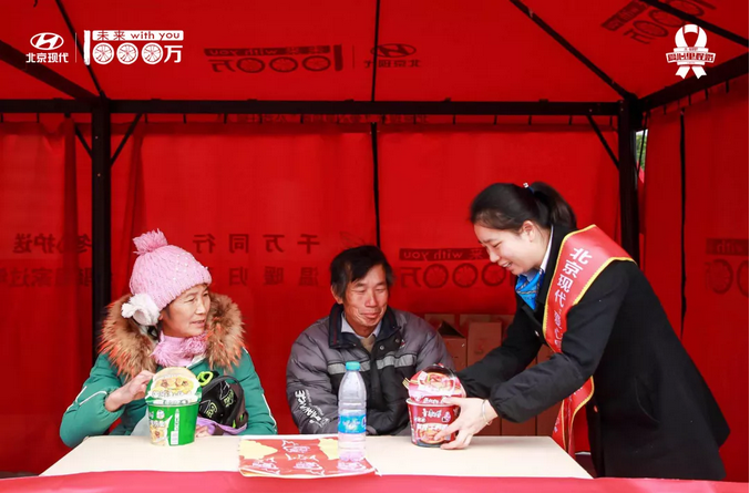 我們還送上包含雨衣、春聯(lián)等物資的