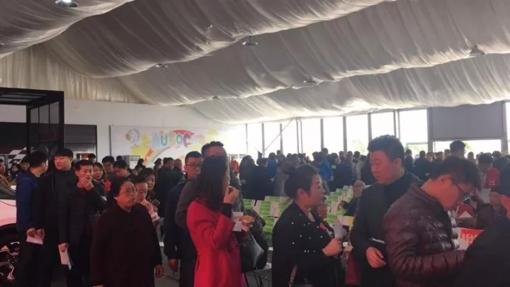 現(xiàn)場(chǎng)參與活動(dòng)的車(chē)友們有序排隊(duì)等待報(bào)名